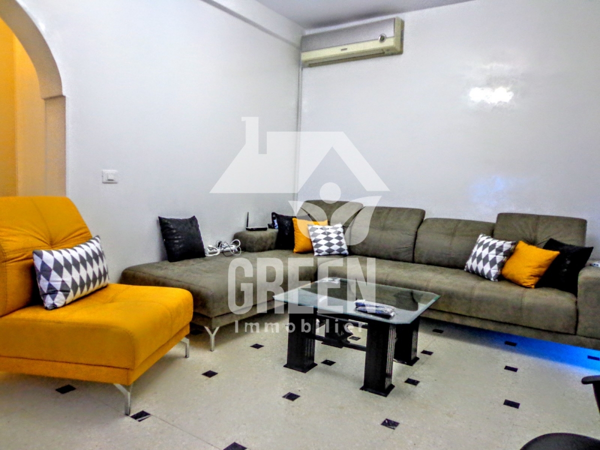 Green immobilière loue à l’année un appartement meublé a HAMMAMET de type S+2, d'une superficie de 120 m², dans un quartier luxueux et résidentiel à 2 minutes à pied de la plage il se compose de : -un spacieux salon / salle à manger -deux terrasses -deux chambres à coucher -une cuisine intégrée et bien aménagée -une salle de bain L'appartement est équipé de chauffage central et de climatisation. contact 00216 98100513