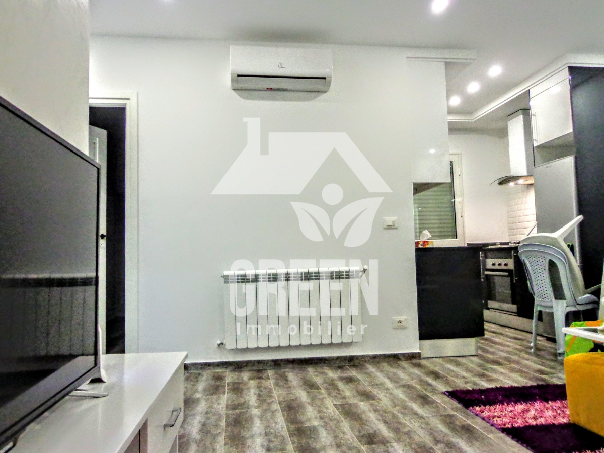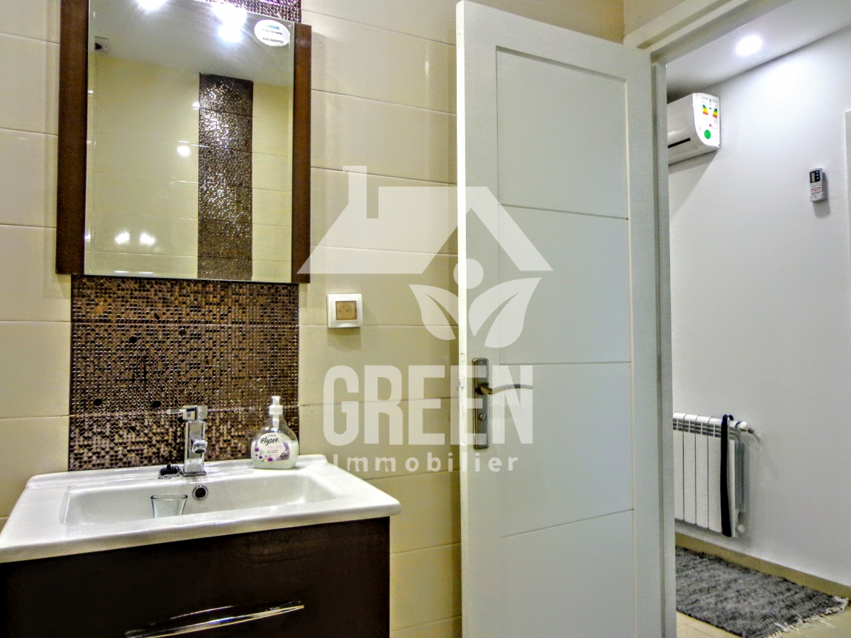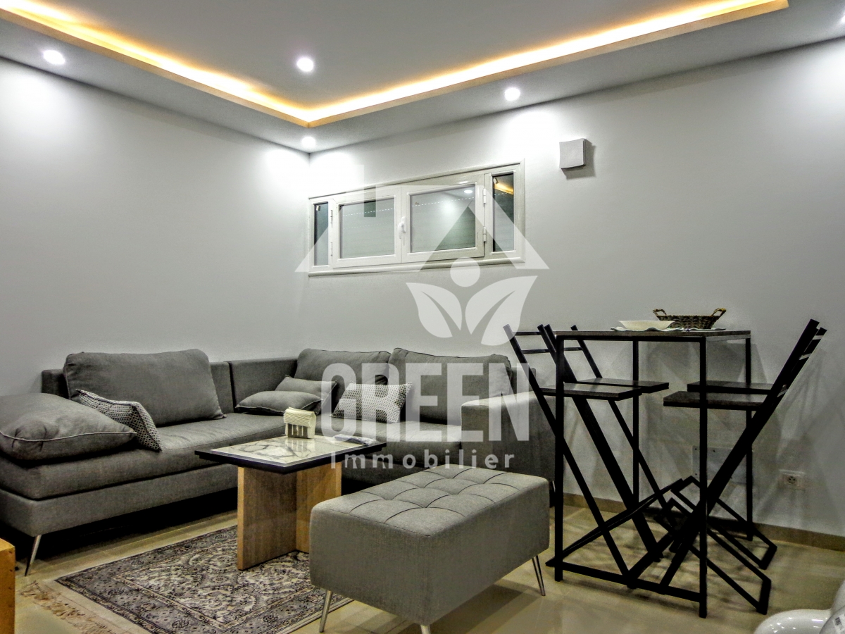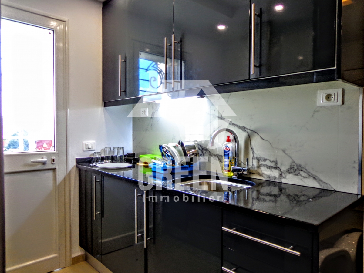 Green Immobilière loue pour vos vacances, un appartement meublé à HAMMAMET sud , de type S+1, d'une superficie de 80 m² dans un quartier luxueux et résidentiel, à 3 minutes de la plage Il se compose de : -un spacieux salon et salle à manger -une chambre a coucher -une cuisine installée et bien aménagée -une salle de bain L'appartement est équipé de chauffage central et de climatisation . 1000 TND la semaine.