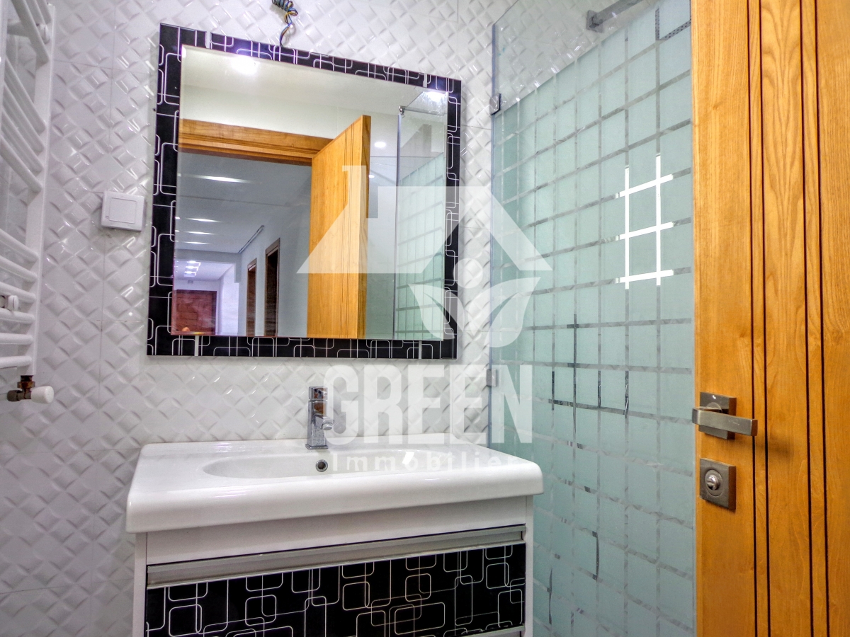 À vendre chez Green Immobilière, un bel appartement Neuf de promoteur, S+2, vue verdoyante, d'une superficie de 110 m², situé dans une nouvelle Résidence de haut standing à la cité AFH Mrezga et à 600 m environ de la plage. Il offre : -un spacieux salon avec balcon -deux chambres à coucher -une cuisine moderne aménagée, avec séchoir -une salle de bain L'appartement est équipé de chauffage central et de climatisation.