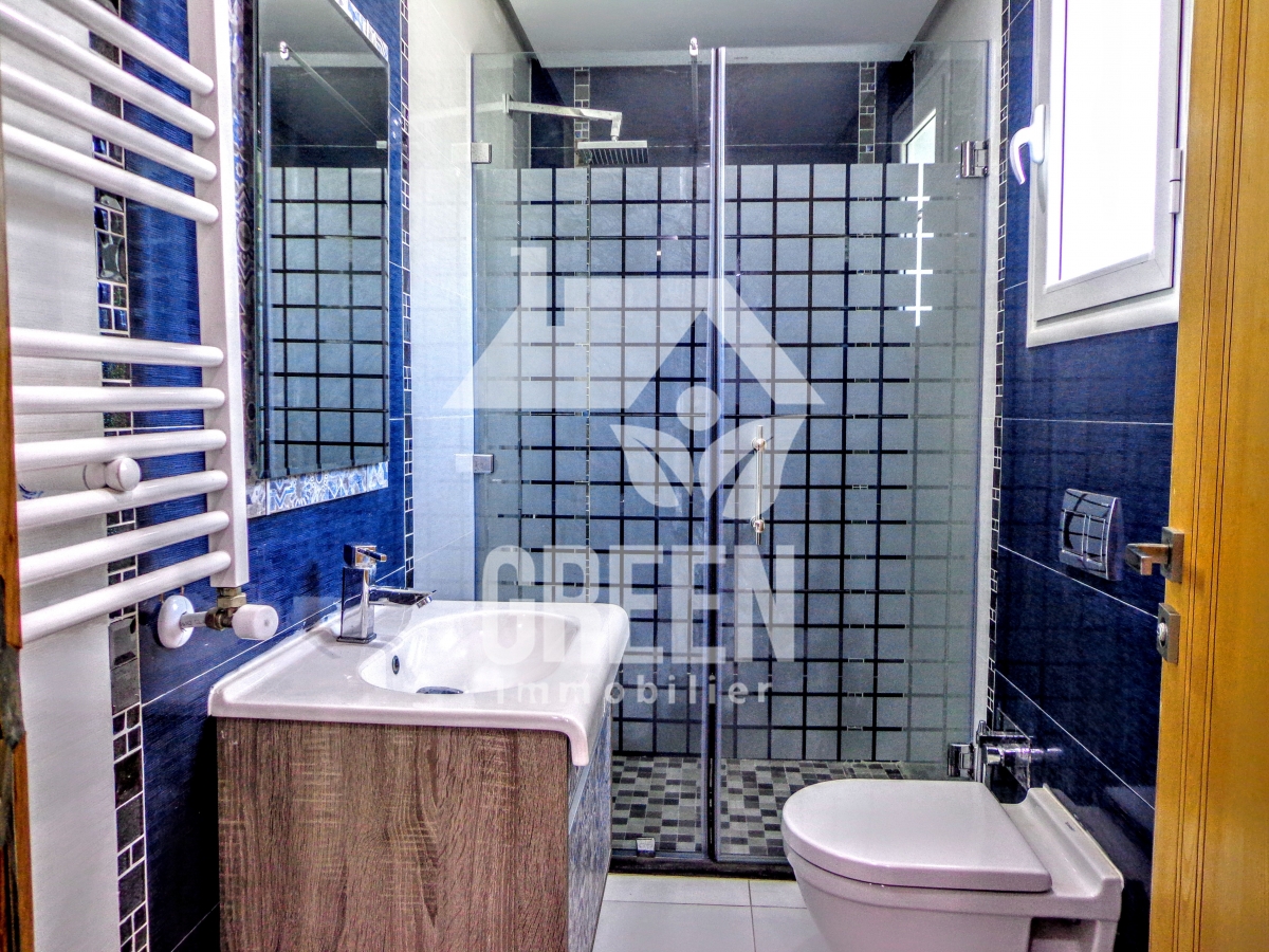 À vendre chez Green immobilière un bel appartement Neuf de chez promoteur, S+1, d'une superficie de 65 m² avec une grande terrasse situé dans une nouvelle résidence de haut standing à Hammamet nord et à 700 m environ de la plage Il offre : -un spacieux salon, salle a manger -une chambre à coucher avec une fenêtre vue sur mer -une cuisine américaine -une salle de bain -un grand terrasse de 30 m² L'appartement est équipé de chauffage central et de climatisation. Prix demandé : 175.000 DT