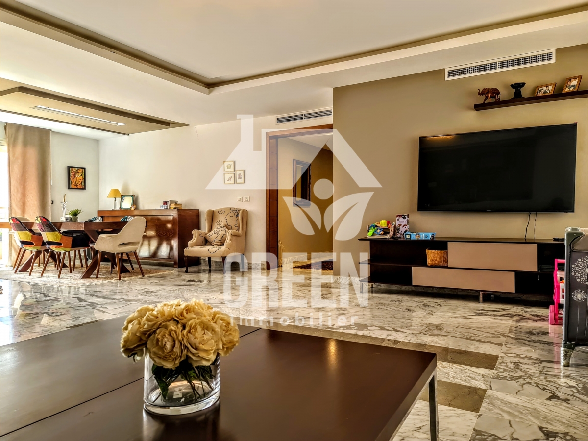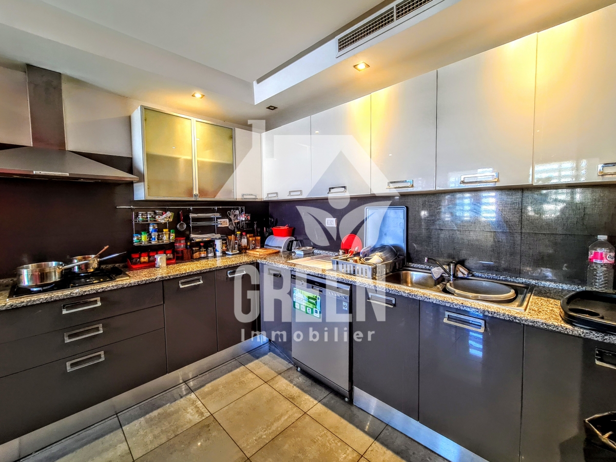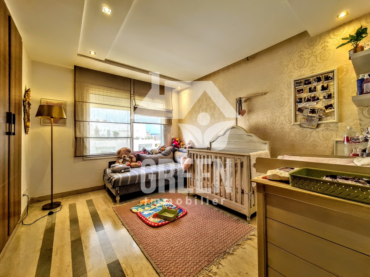 À vendre chez Green immobilière un spacieux appartement Neuf S+3, d'une superficie de 237 m², situé dans une nouvelle résidence neuve, sécurisée et gardée de haut standing, situé au jardin de Carthage Il offre : -un spacieux salon, salle à manger -une suite parentale avec une salle de bain et dressing - 2 chambres à coucher -une cuisine moderne aménagée avec séchoir - 3 salles de bains -deux balcons - Deux place de parking au sous-sol - un cellier de 11 mètres L'appartement est équipé de chauffage central et de climatisation