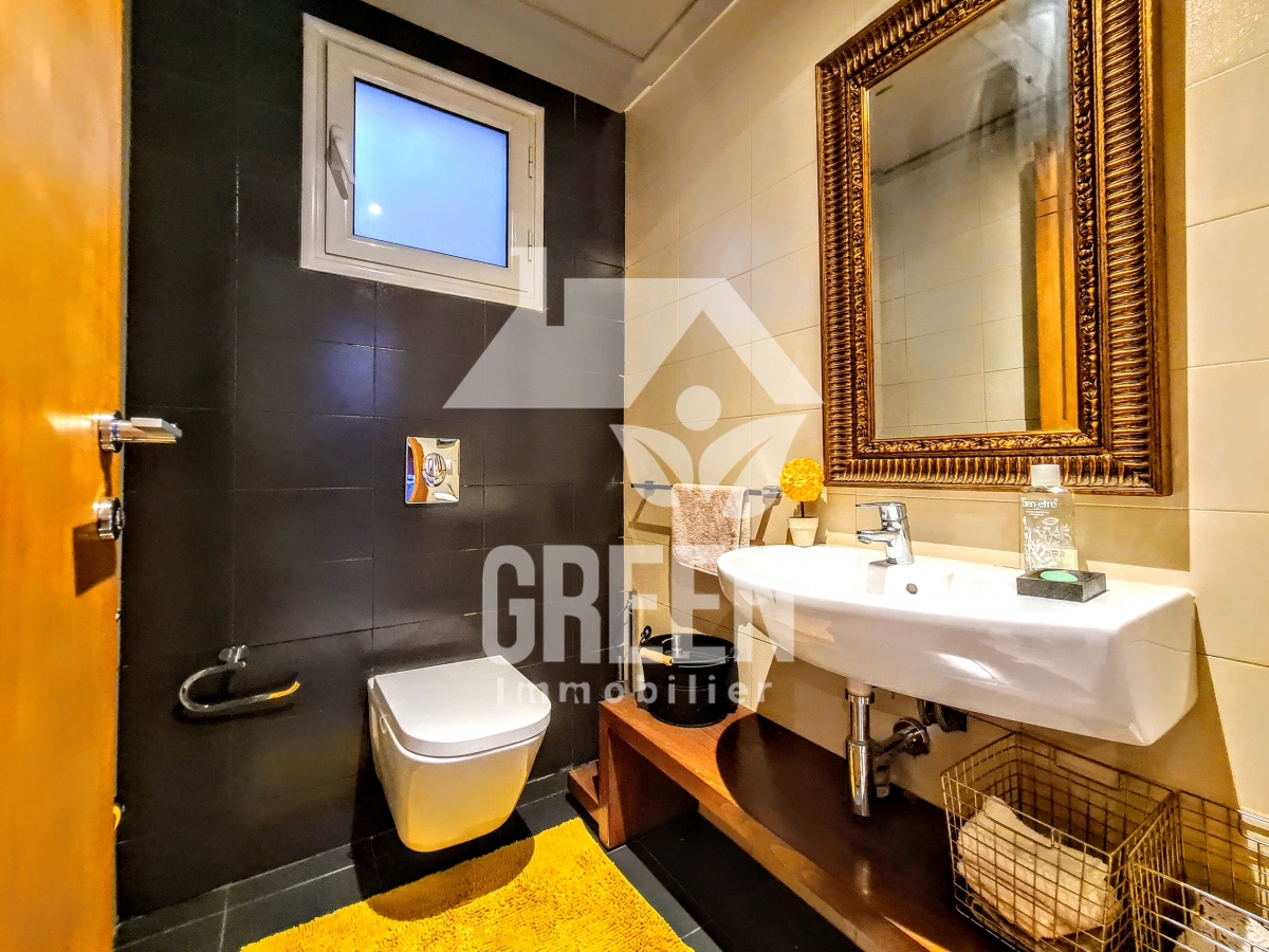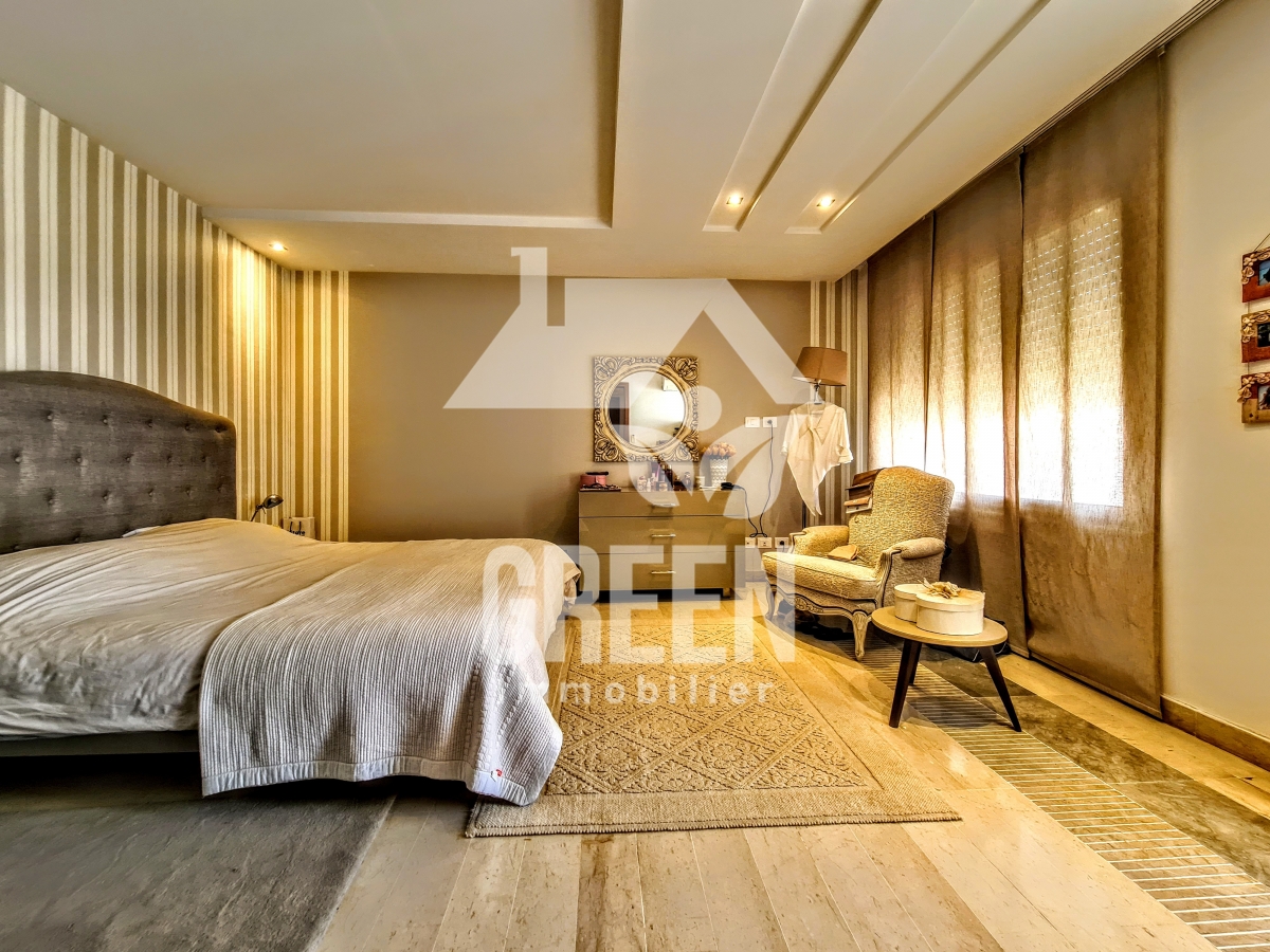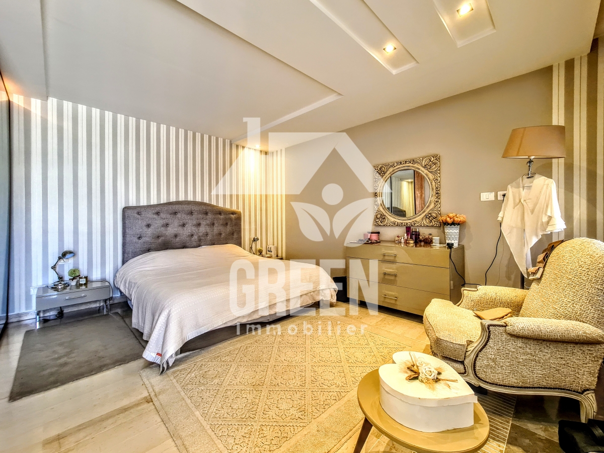 À vendre chez Green immobilière un spacieux appartement Neuf S+3, d'une superficie de 237 m², situé dans une nouvelle résidence neuve, sécurisée et gardée de haut standing, situé au jardin de Carthage Il offre : -un spacieux salon, salle à manger -une suite parentale avec une salle de bain et dressing - 2 chambres à coucher -une cuisine moderne aménagée avec séchoir - 3 salles de bains -deux balcons - Deux place de parking au sous-sol - un cellier de 11 mètres L'appartement est équipé de chauffage central et de climatisation