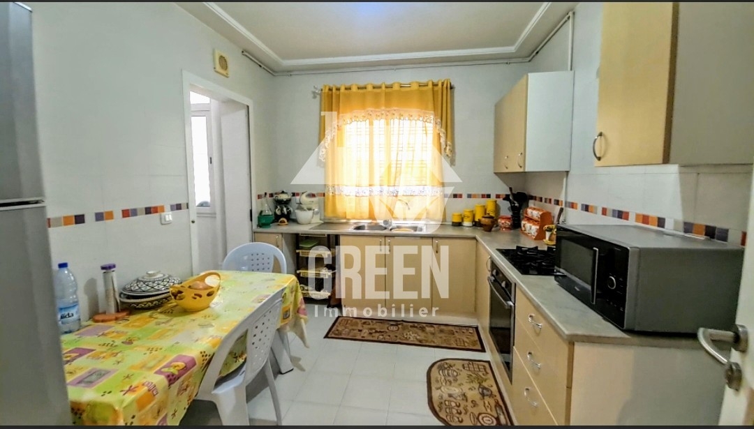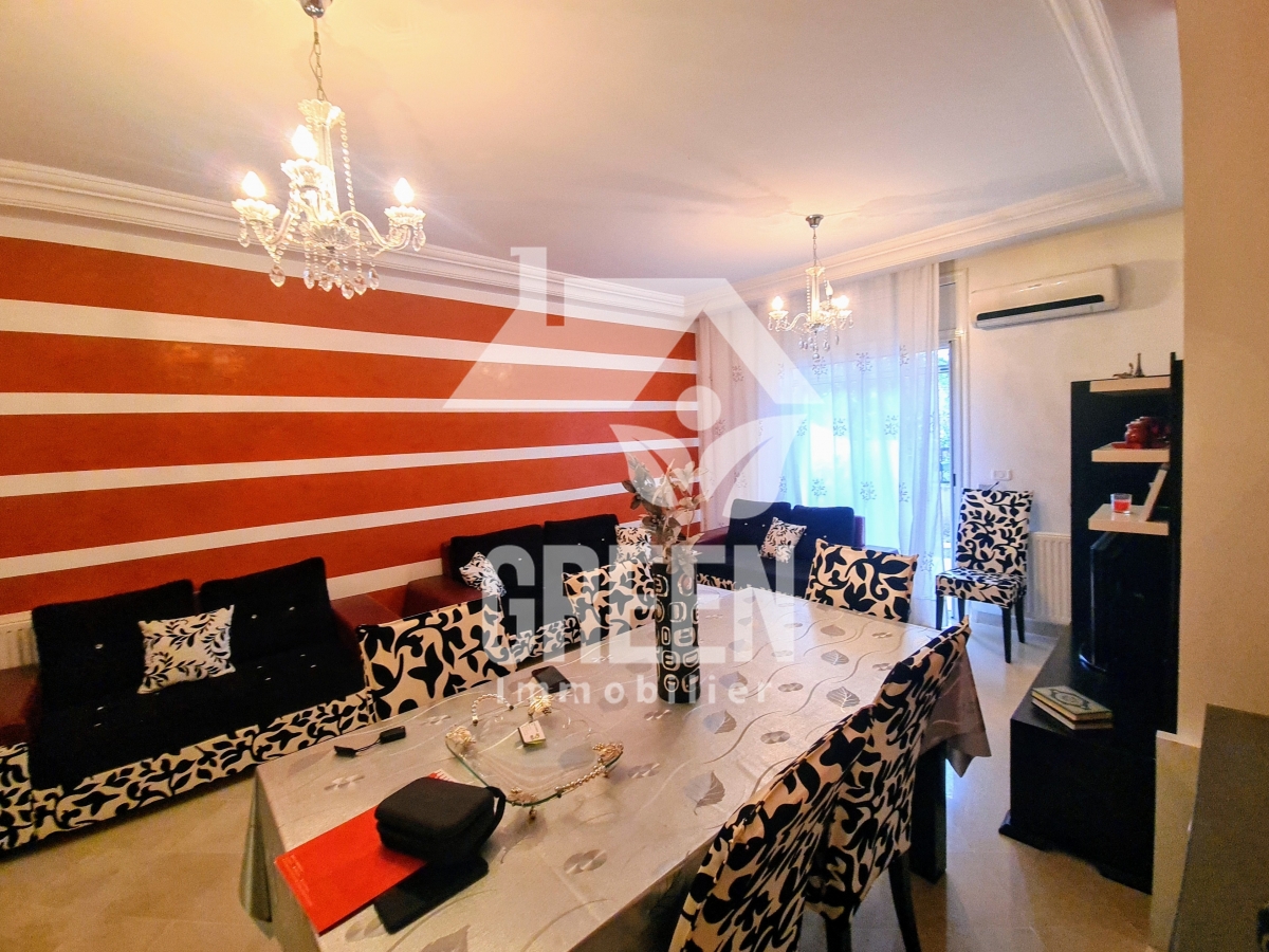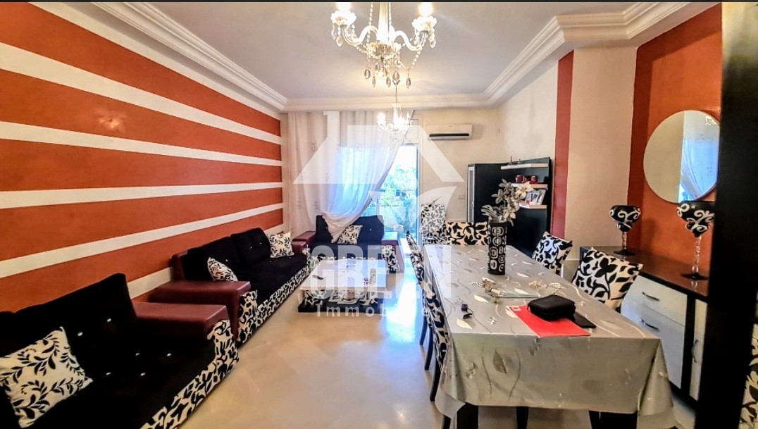À vendre chez Green immobilière un spacieux appartement Neuf S+2 au rez de chausser, d'une superficie de 100 m², situés dans une nouvelle résidence, sécurisée et gardée de haut standing, situé à Rades plage Il offre : -un spacieux salon, salle à manger - 2 chambres à coucher -une cuisine moderne aménagée avec séchoir -une salle de bain -une salle d'eau -une petite terrasse avec un petit jardin -une place de parking - l'appartement est équipé de chauffage central et climatisation