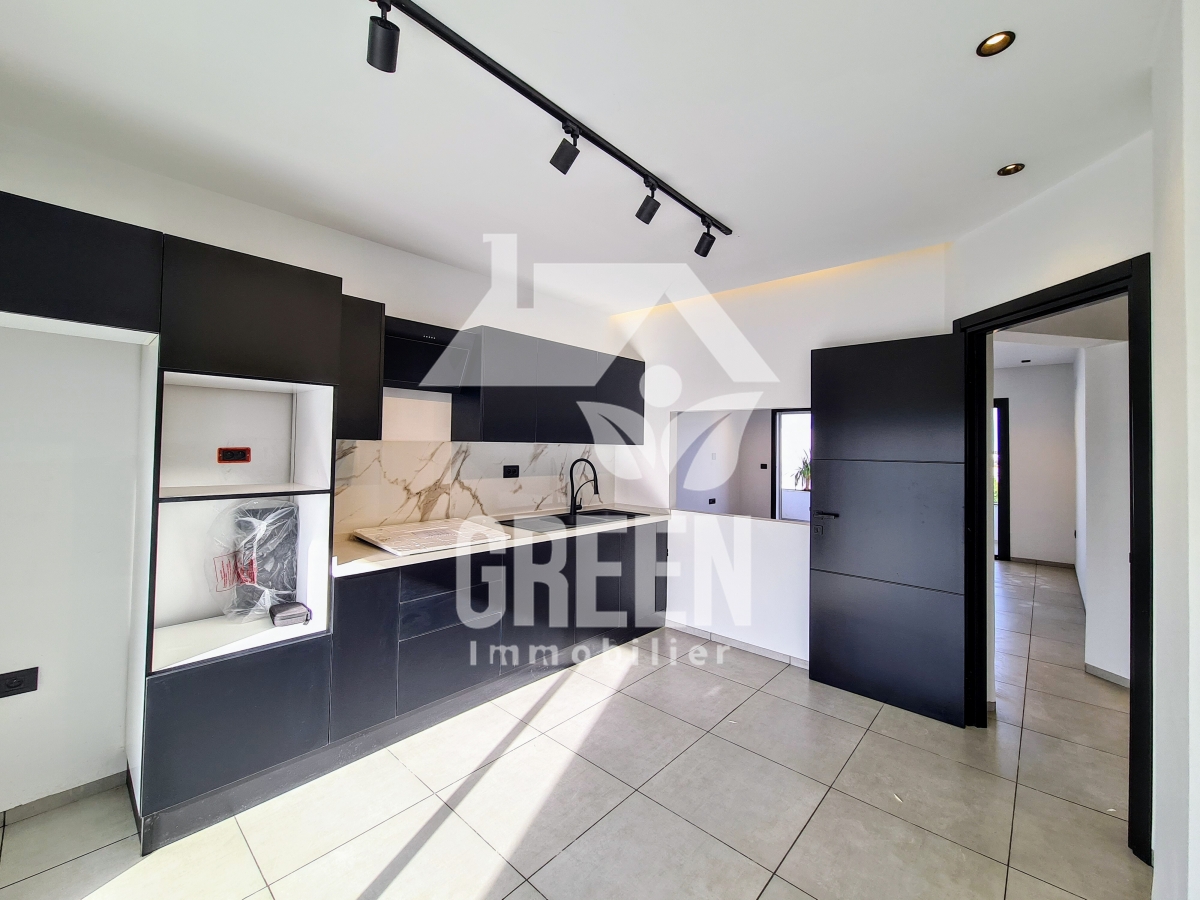 À vendre chez Green immobilière, un bel appartement Neuf du type S+3, d'une superficie de 145 m² situé dans une nouvelle résidence de haut standing à la cité Mrezga et à 600 m environ de la plage