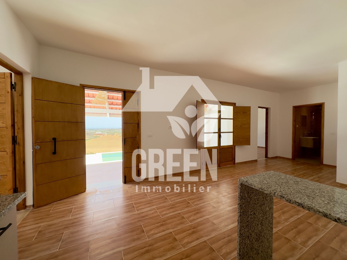 À vendre chez Green Immobilière, une demeure de prestige située à Hammamet zone monchar Elle s'étend sur un terrain de 500 m² avec une superficie habitable de 90 m². La villa offre: -un salon salle a manger -Une cuisine haut de gamme , offrant des espaces de rangement intelligents et ergonomiques -deux chambres a couchers -une salle de bain -Un jardin -une piscine